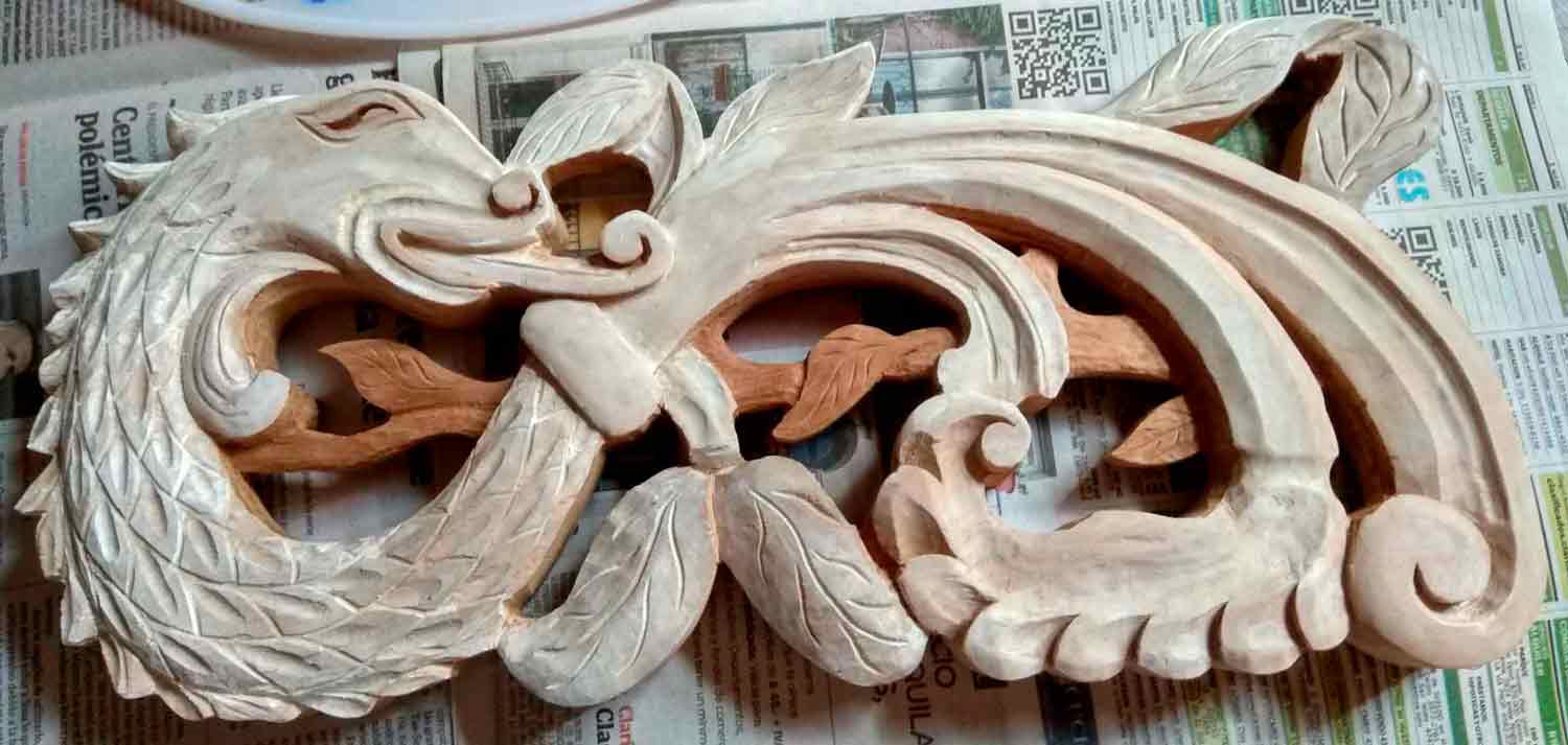 Tallar un dragón es un gran placer, para duplicar ese placer es que lo tallé de ambos lados. Dos dragones para disfrutar.